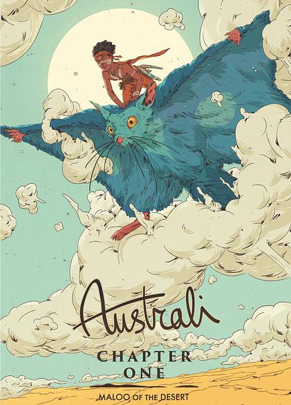AUSTRALI #1 Chapter One: Maloo of the Desertwritten by Timothy Wood and beautifully illustrated by international comic artist Pius Bak. We follow the story of Maloo, a young Aboriginal boy searching for his people and a place to call home.