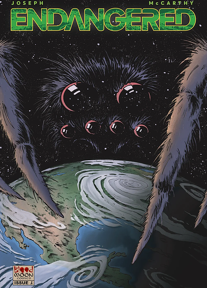 Published by Blood Moon Comics, writer Jon McCarthy and artist Ron Joseph invite you to a post-apocalyptic civilisation in the stars looking to repopulate earth, in the first issue of "Endangered." A science fiction comic book which launches the reader headfirst into the points of view of the remaining human survivors as they plan how they might survive on their new home, the space station Salvation.